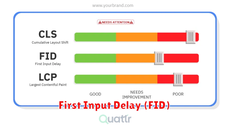 - First Input Delay (FID): Measures interactivity. FID quantifies the experience users have when they first try to interact with the page.