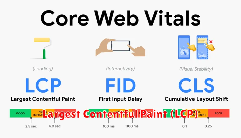 - Largest Contentful Paint (LCP): Measures loading performance. LCP marks the point in the page load timeline when the main content has likely loaded.